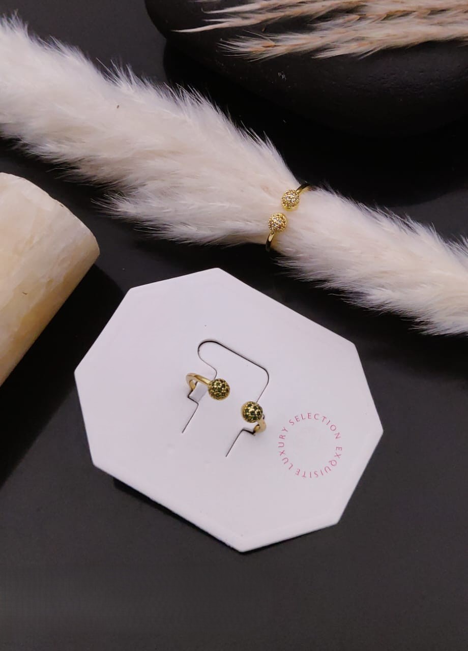 AGHIRA’s Gold CZ Ball Ring is a celebration of refined texture and minimalist elegance. Featuring a sculpted spherical bead with intricate lattice detailing, this ring offers a polished gold finish and anti-tarnish coating for lasting brilliance. The adjustable band ensures a comfortable fit, making it perfect for everyday wear or special occasions.